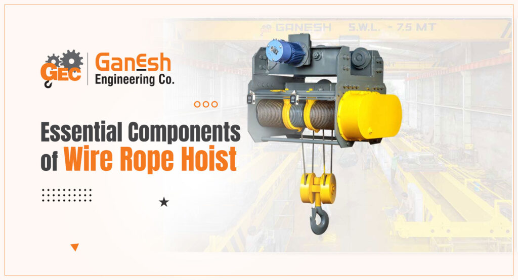 A hoist is a mechanism that is particularly built to lift and lower weights that are too heavy for manual labor. Wire rope hoists feature a drum or wheel around which a chain or rope is wrapped, determining whether the load is hoisted or lowered. Hoists come in a variety of forms and sizes. This blog post explains the important components of a wire rope hoist.